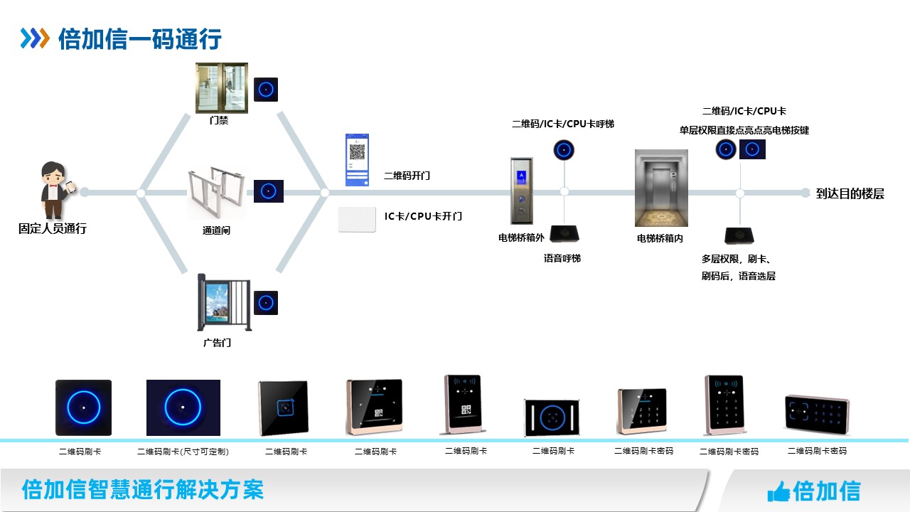 1、一個二維碼通行門禁、梯控、閘機等設備;