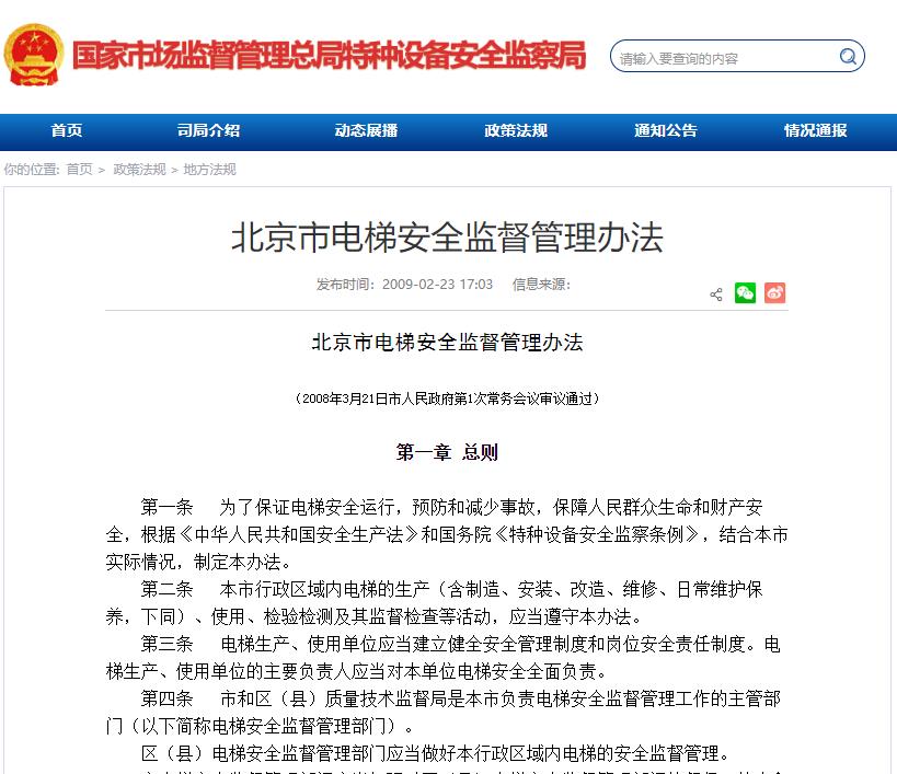 北京市電梯安全監(jiān)督管理辦法